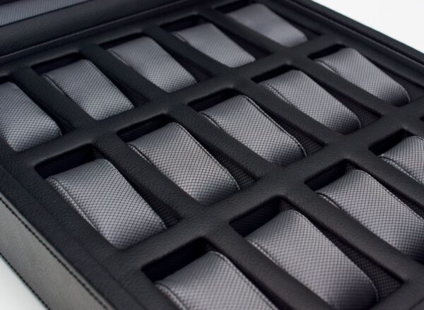 - Storage: 15 piece watch storage (cuff will accommodate up to 52mm case);